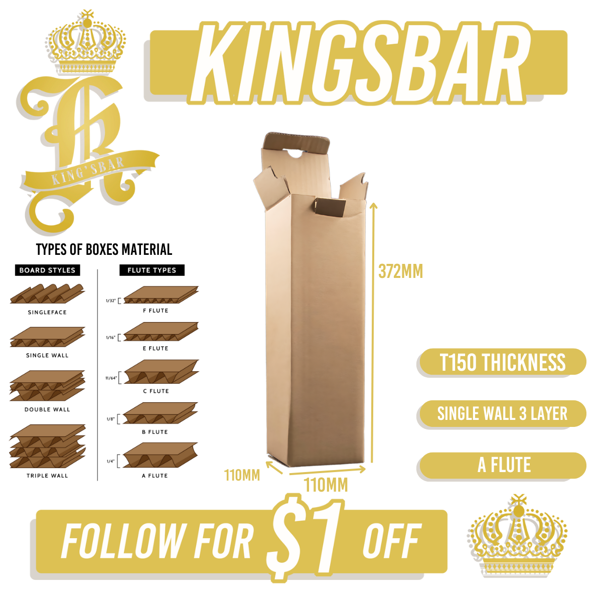 Packaging boxes for bottle.Top quality to withstand your product.Single bottle boxes dimension L110 X W110 X H372